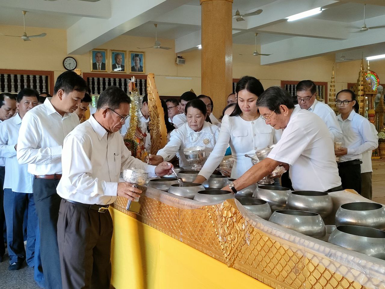 ក្នុងឱកាសនោះ លោកស្រី ម៉ននី រង្សី អភិបាលរងខេត្ត បានមានប្រសាសន៍ថា បច្ចុប្បន្នប្រទេសជាតិមានសុខសន្តិភាពទើបមានការអភិវឌ្ឍ ប្រជាពុទ្ឋបរិស័ទមានឱកាសប្រកបកិច្ចការរកស៊ីជួញដូរដោយមិនមានការភ័យខ្លាច ដែលញ៉ាំងឱ្យកំរិតនៃសេដ្ឋកិច្ច និងជីវភាពក្នុងគ្រួសារចេះតែរីកលូតលាស់ ហើយពួកគាត់រីករាយ និងជ្រះថ្លាក្នុងការមកធ្វើបុណ្យទានផ្សេងៗ ជួបជុំគ្នាទៅតាមទំលៀមទំលាប់ប្រពៃណីពីបូរុមបូរាណ។ ជាក់ស្ដែងពិធីបុណ្យភ្ជុំបិណ្ឌ ជាបុណ្យប្រពៃណីខ្មែរ ដែលប្រជាពុទ្ធបរិស័ទខ្មែរគ្រប់រូបតែងតែធ្វើជារៀងរាល់ឆ្នាំ ដើម្បីឧទ្ទិសកុសលផលបុណ្យជូនជីដូនជីតា ញាតិការទាំង ៧សណ្តាន ដែលលោកបានចែកឋានទៅកាន់លោកខាងមុខហើយនោះ សូមឲ្យលោកបានទៅកាន់សុគតិភព នឹងសូមឲ្យកូនចៅដែលនៅមានជីវិតរស់រានឲ្យជួបប្រទះតែសេចក្តីសុខចំរើន។ ហេតុនេះសូមពុកម៉ែបងប្អូននាំគ្នា រក្សាសុខសន្តិភាពនេះ ឱ្យនៅស្ថិតស្ថេរគង់វង្ស សម្រាប់ជាគ្រឺះក្នុងកិច្ចការអភិវឌ្ឍជាតិមាតុភូមិយើងជាបន្តទៅទៀត ដើម្បីទុកជាកេរដំណែលដល់កូនចៅ ជំនាន់ក្រោយរបស់យើង។