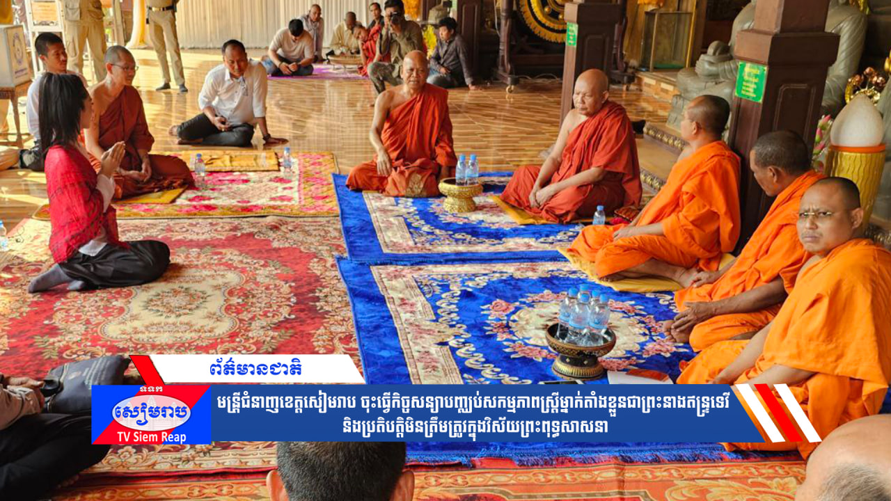 នៅថ្ងៃទី០២ ខែកុម្ភៈ ឆ្នាំ២០២៥នេះ លោក យុន លីនណេ អភិបាលរងខេត្តសៀមរាប បានដឹកនាំមន្ត្រីជំនាញ រួមនឹងការនិមន្តចូលរួមពីព្រះមេគណខេត្ត បានចុះអប់រំណែនាំ និងធ្វើកិច្ចសន្យាជាមួយស្ត្រីម្នាក់ឈ្មោះ អេន ចរិយា ហៅអ្នកគ្រូ លី ឱ្យបញ្ឈប់សកម្មភាពដែលតាំងខ្លួនជាអ្នកមានបុណ្យ ជាព្រះនាងឥន្ទ្រទេវី និងការប្រតិបត្តិមិនត្រឹមត្រូវក្នុងវិស័យព្រះពុទ្ធសាសនា នៅវត្តអង្គរខាងជើង សង្កាត់នគរធំ ក្រុងសៀមរាប។