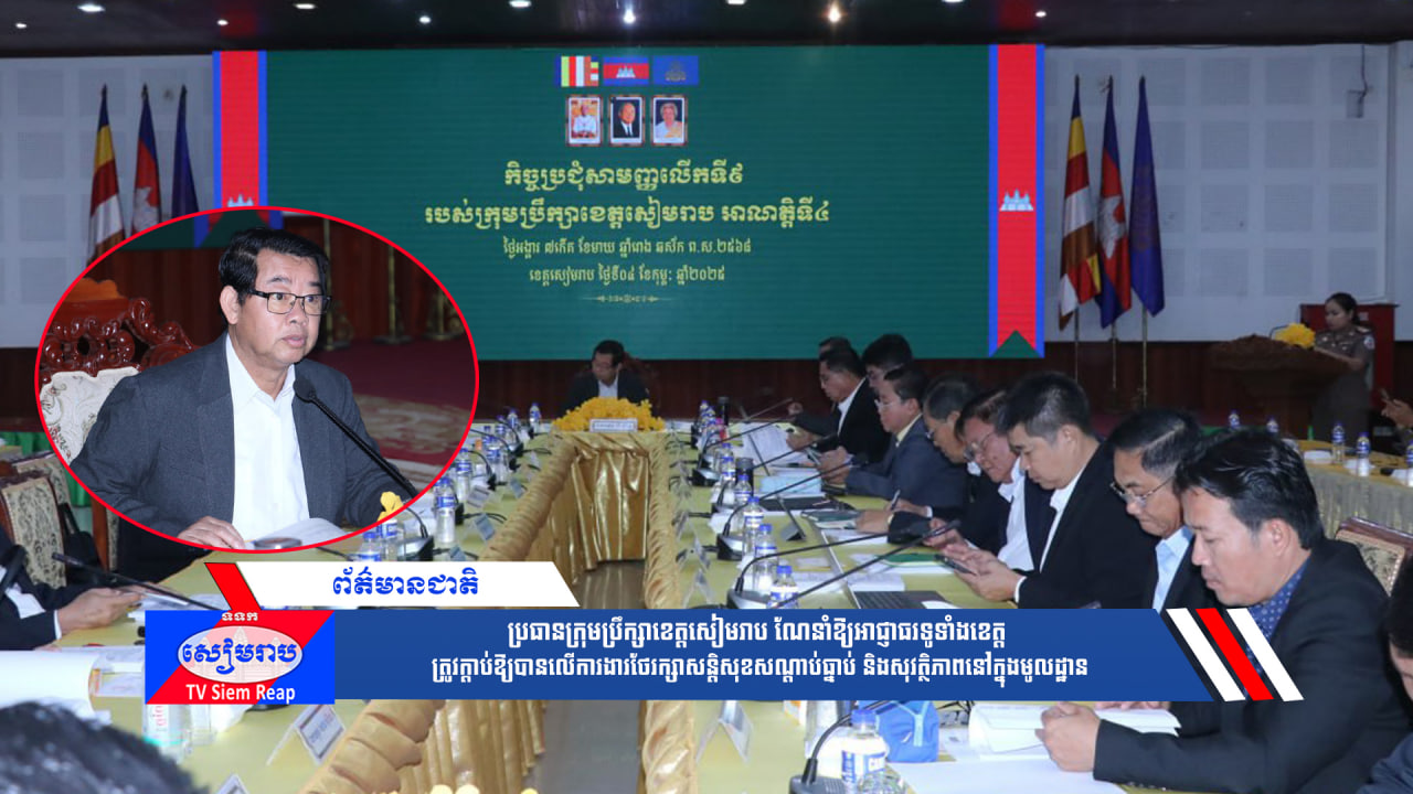 ថ្លែងក្នុងកិច្ចប្រជុំសាមញ្ញលើកទី៩ របស់ក្រុមប្រឹក្សាខេត្តសៀមរាប នៅថ្ងៃទី០៤ ខែកុម្ភៈ ឆ្នាំ២០២៥នេះ ឯកឧត្តម លី សំរិទ្ធ ប្រធានក្រុមប្រឹក្សាខេត្ត បានណែនាំឱ្យអាជ្ញាធរគ្រប់ជាន់ថ្នាក់ទូទាំងខេត្ត ត្រូវក្តាប់ឱ្យបានលើការងារថែរក្សាសន្តិសុខ សណ្តាប់ធ្នាប់ និងសុវត្ថិភាពនៅក្នុងមូលដ្ឋាន ដើម្បីភាពសុខសាន្តរបស់បងប្អូនប្រជាពលរដ្ឋ។