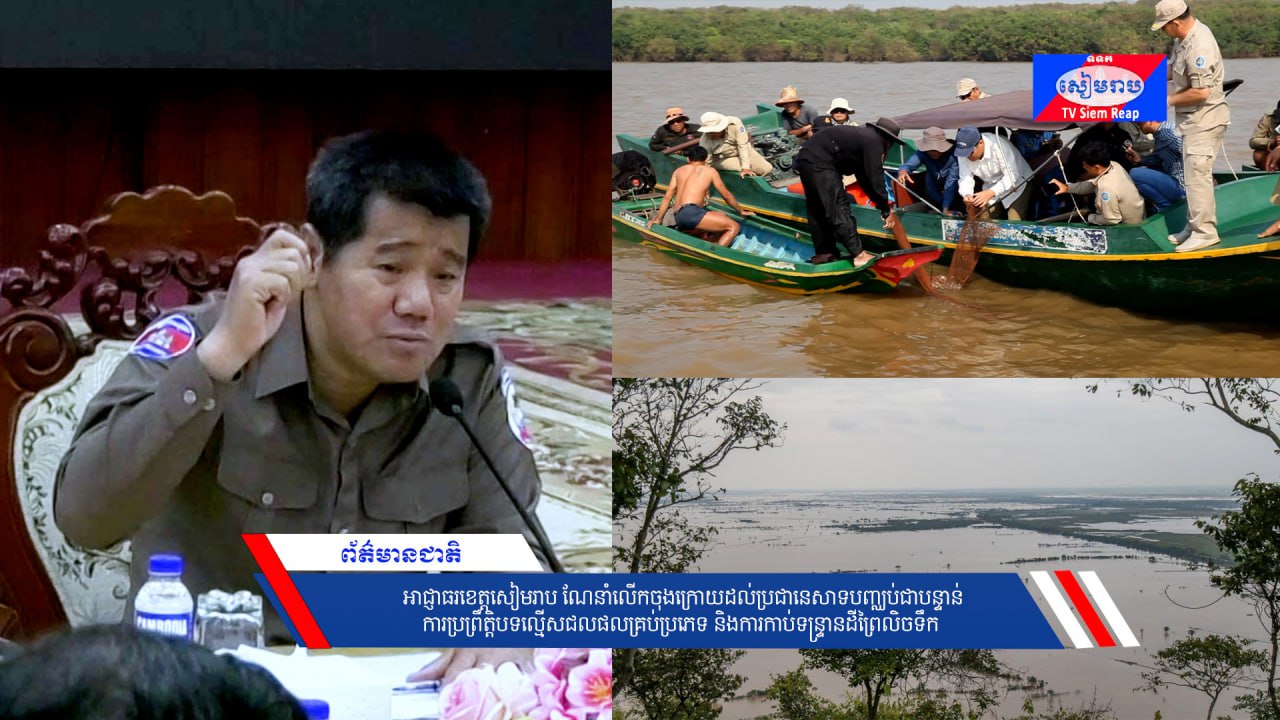 លោក អភិបាលរងខេត្ត សង្កត់ធ្ងន់ថា យោងតាមបទបញ្ជាដ៏ម៉ឺងម៉ាត់របស់សម្តេចធិបតីនាយករដ្ឋមន្ត្រី និងអនុវត្តន៍ដោយ ឯកឧត្តម នាយឧត្តមសេនីយ៍ ម៉ៅ សុផាន់ អគ្គមេបញ្ជាការរង នៃកងយោធពលខេមរភូមិន្ទ និងជាមេបញ្ជាការកងទ័ពជើងគោក បានធ្វើ្ផការផ្សព្វផ្សាយបទបញ្ជា ស្តីពីការបង្ក្រាបបទល្មើសនេសាទក្នុងបឹងទន្លេសាប ដែលនេះជាការណែនាំឱ្យប្រជានេសាទបញ្ឈប់ជាបន្ទាន់ នូវការប្រព្រឹត្តបទល្មើសជលផលគ្រប់ប្រភេទ ក៏ដូចជាការកាប់ទន្ទ្រានដីព្រៃលិចទឹកដែលរដ្ឋបានហាមឃាត់ ដើម្បីចៀសវាងការទទួលទោសទណ្ឌជាធរមាន។