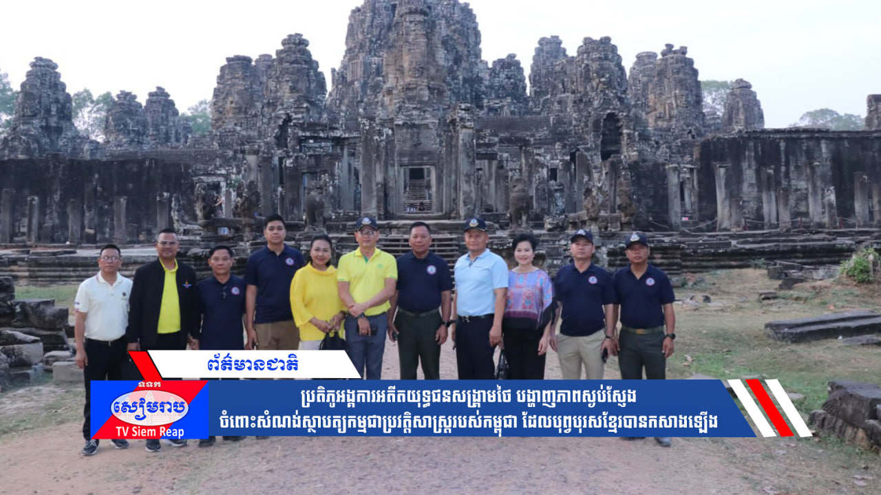 ក្នុងដំណើរទស្សនកិច្ចរយៈពេល២ថ្ងៃ នៅលើទឹកដីនៃខេត្តសៀមរាប នៅថ្ងៃទី១០-១១ ខែកុម្ភៈ ឆ្នាំ២០២៥នេះ ប្រតិភូអង្គការអតីតយុទ្ធជនសង្រ្គាមថៃ បានថ្លែងការកោតសរសើរ និងបង្ហាញនូវភាពស្ងប់ស្ញែង ចំពោះសំណង់ស្ថាបត្យកម្មជាប្រវត្តិសាស្ត្ររបស់ខ្មែរ ដែលបុព្វបុរសខ្មែរនាសម័យអង្គរ បានកសាងឡើង និងបានបន្សល់ទុកជាមរតកសម្រាប់អ្នកជំនាន់ក្រោយ និងផ្តល់នូវតម្លៃមិនអាចកាត់ថ្លៃបាន។