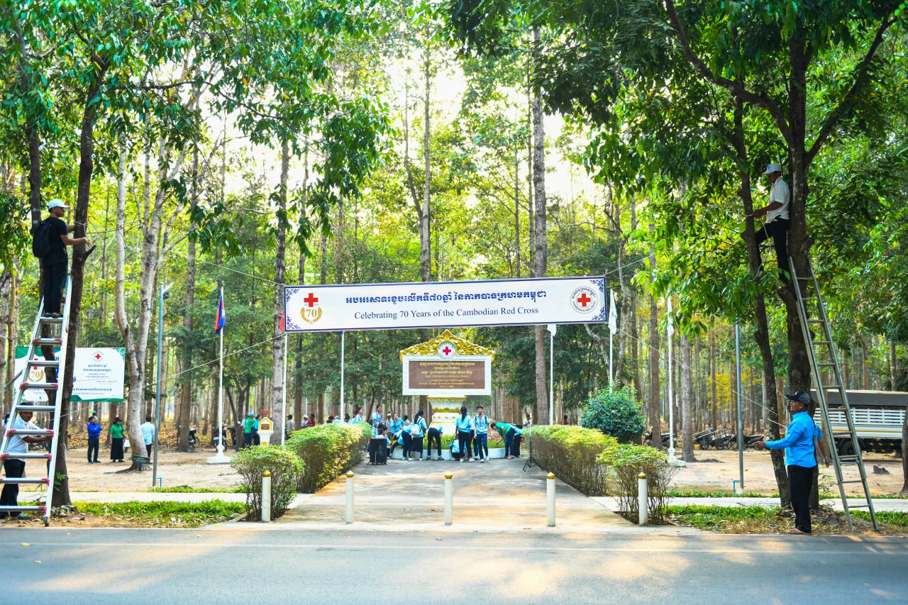ដើម្បីអបអរខួបលើកទី៧០ ថ្ងៃកំណើតកាកបាទក្រហមកម្ពុជា នៅថ្ងៃទី១៨ ខែកុម្ភៈ ឆ្នាំ២០២៥នេះ លោក ស៊ុំ សំអន នាយកប្រតិបត្តិសាខាកាកបាទក្រហមកម្ពុជាខេត្តសៀមរាប បានដឹកនាំសហការី រួមនឹងយុវជនស្ម័គ្រចិត្ត ធ្វើការបោសសំរាម ស្លឹកឈើងាប់ ធ្វើផ្លូវការពារភ្លើងឆេះ សម្អាតពាក្យស្លាក ដើម្បីបញ្ជាក់ពីសកម្មភាពដែលសម្រេចបាននូវគោលដៅសកល តាមរយៈការរួមចំណែកការការពារបរិស្ថាន និងភាពធន់នឹងបម្រែបម្រួលអាកាសធាតុ នៅក្នុងឧទ្យានសហស្សវត្សរ៍កាកបាទក្រហមកម្ពុជា ក្នុងក្រុងសៀមរាប។