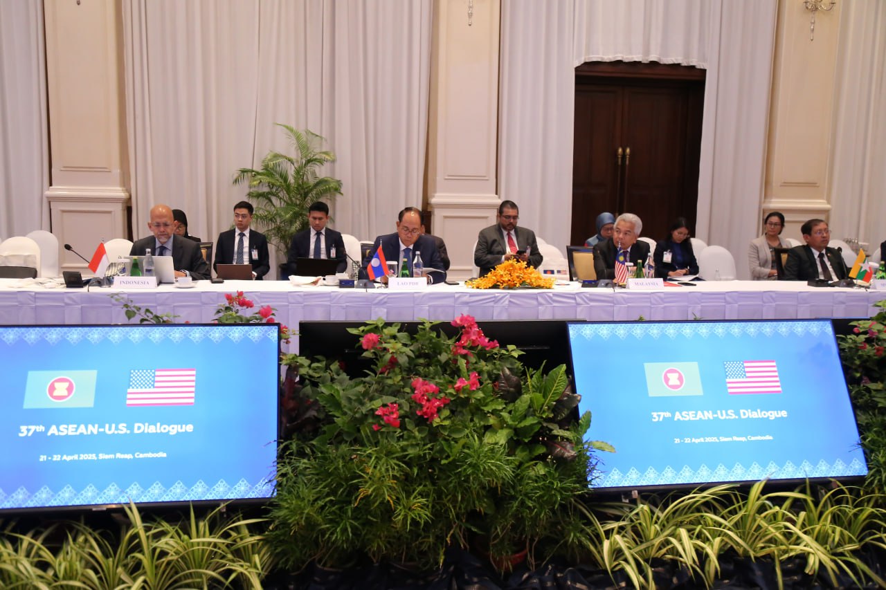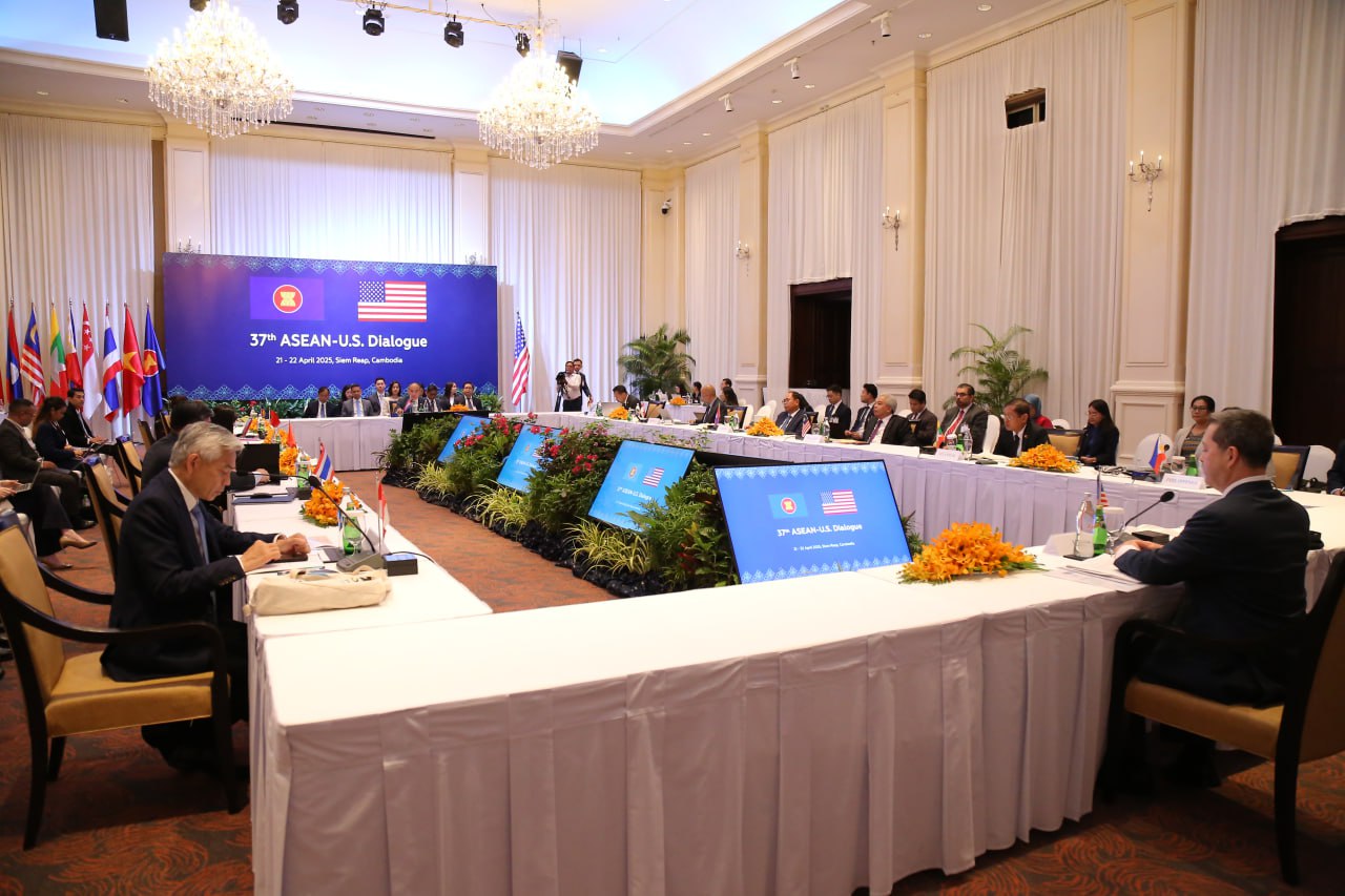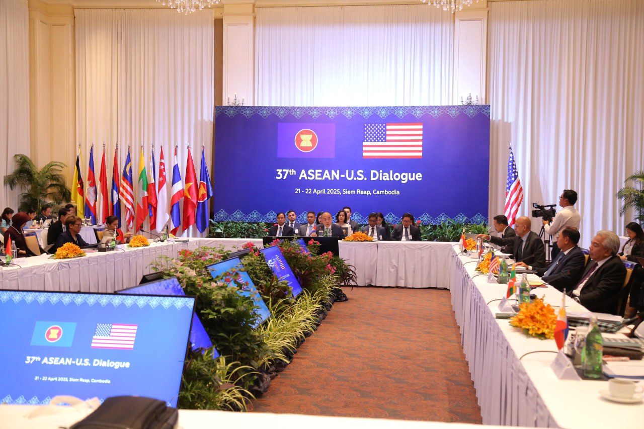 សូមជម្រាបថា កិច្ចសន្ទនាអាស៊ាន-អាមេរិក លើកទី៣៧នេះ កម្ពុជាទទួលបានសិទ្ធិធ្វើជាម្ចាស់ផ្ទះ ដោយខាងភាគីអាស៊ានមាន ឯកឧត្តម គង់ ភោគ រដ្ឋលេខាធិការក្រសួងការបរទេស និងសហប្រតិបត្តិការអន្តរជាតិ ជាសហប្រធាន និងខាងសហរដ្ឋអាមេរិក មានលោក សៀន អូនៀល ជាសហប្រធានដឹកនាំកិច្ចប្រជុំ៕