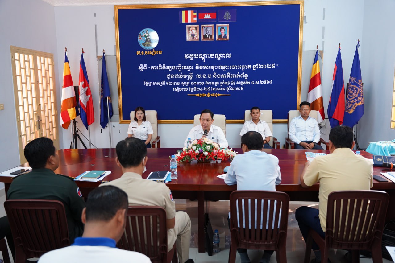 នៅថ្ងៃទី២៤ ខែមេសា ឆ្នាំ២០២៥នេះ លេខាធិការដ្ឋានរៀបចំការបោះឆ្នោត ខេត្តសៀមរាប បើកវគ្គបណ្ដុះ បណ្តាល រយៈពេល០២ថ្ងៃ ចាប់ពីថ្ងៃទី២៤ ថ្ងៃទី២៥ ខែមេសា ឆ្នាំ២០២៥ ស្តីពី ការពិនិត្យបញ្ជីឈ្មោះ និងការចុះឈ្មោះបោះឆ្នោត ឆ្នាំ២០២៥ ជូនដល់មន្ត្រី លេខាធិការដ្ឋានរៀបចំការបោះឆ្នោត តំណាងគណបក្សនយោបាយ សមាគម និងអង្គការមិនមែនរដ្ឋាភិបាល អាជ្ញាធរពាក់ព័ន្ធ ក្នុងខេត្តសៀមរាប។