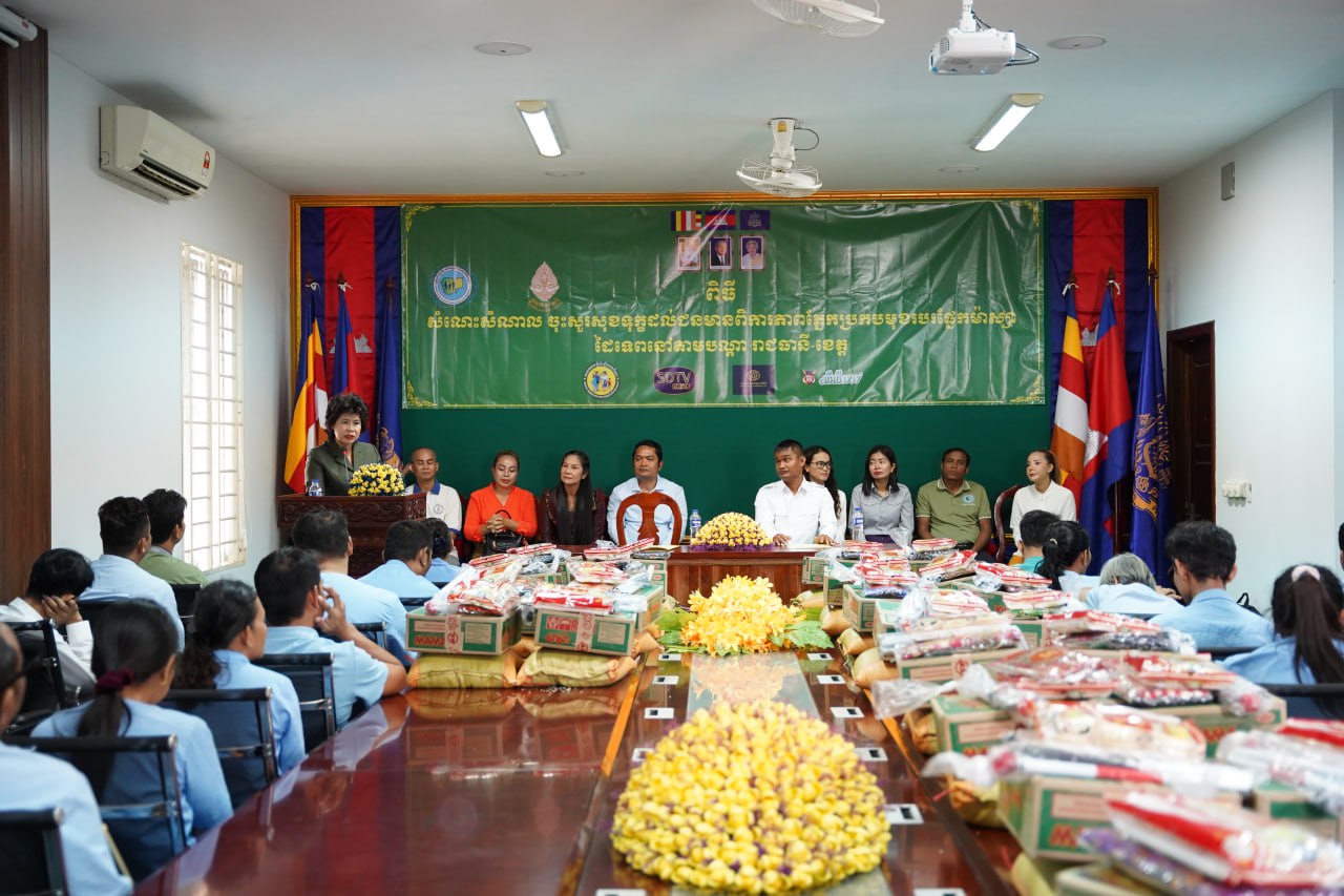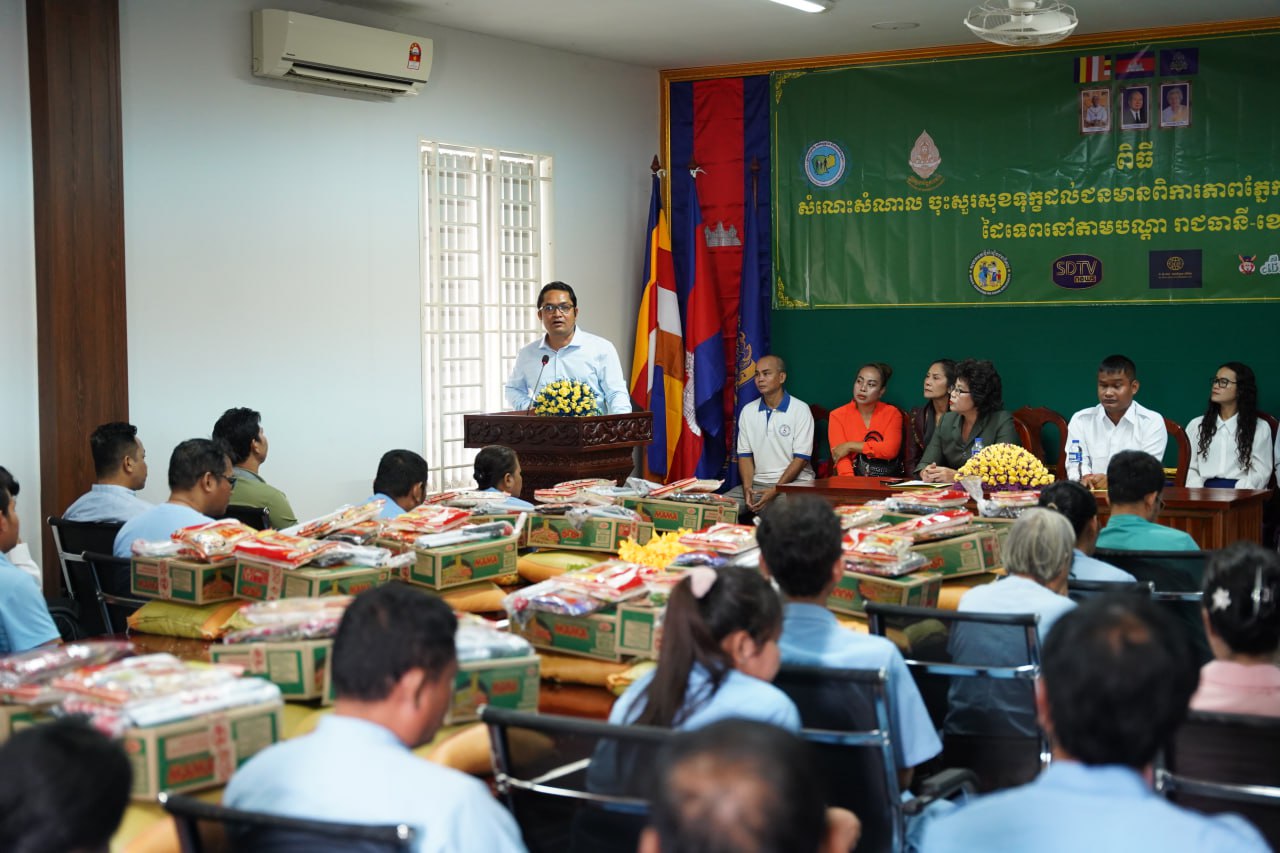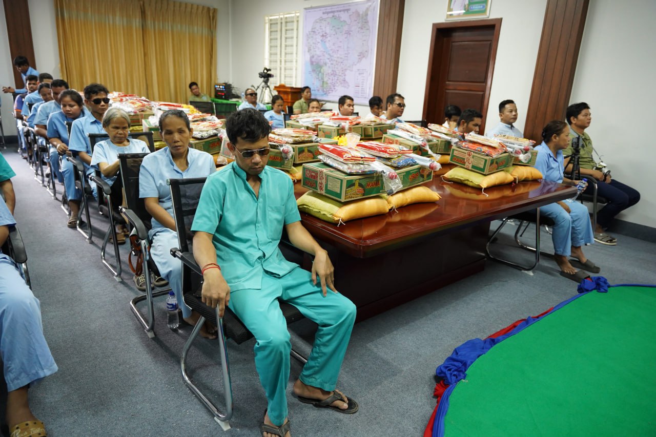 សូមជម្រាបថា ក្នុងឱកាសនោះ ឯកឧត្តម ជា សុមេធី រដ្ឋមន្ត្រីក្រសួងសង្គមកិច្ច អតីតយុទ្ធជន និងយុវនីតិសម្បទា ក៏បានផ្ដល់អំណោយដល់ជនមានពិការភាពភ្នែកប្រកបមុខរបរផ្នែកម៉ាស្សាដៃទេព ចំនួន២២នាក់ ដោយក្នុងម្នាក់ទទួលបាន អង្ករ១០គីឡូ ត្រីខ១យួរ ទឹកស៊ីអ៊ីវ១យួរ មី១កេស សារុង១ ឈើច្រត់១ និងថវិកា ៥០០០០រៀល។