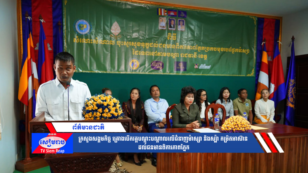 បើតាមលោក គង់ សំអឿន ប្រធានមន្ទីរសង្គម កិច្ចអតីតយុទ្ធជន និងយុវនីតិសម្បទាខេត្តសៀមរាប បានឱ្យដឹងថា ជនពិការភាពផ្នែកកាយសម្បទា ពិការញ្ញាណដឹង ពិការសតិបញ្ញា ពិការផ្លូវចិត្ត និងពិការផ្សេងៗទៀត នៅទូទាំងខេត្តសៀមរាប មានចំនួន ១៨ ៩៣៨នាក់ ក្នុងនោះជនមានពិការភាពចំនួន ២ ៦៥១នាក់ ទទួលបានប្រាក់ឧបត្ថម្ភពីកម្មវិធីជាតិជំនួយសង្គមផងដែរ៕