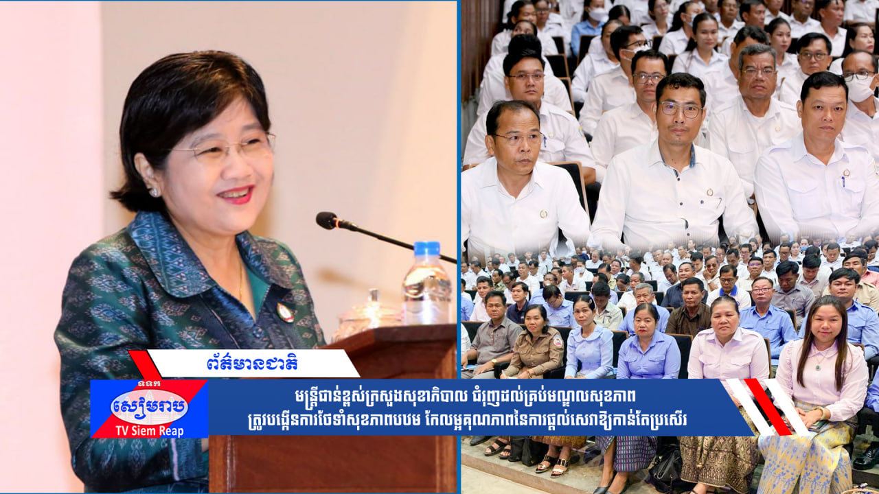 ក្នុងកិច្ចប្រជុំពិនិត្យវឌ្ឍនភាព និងជំរុញការអនុវត្តផែនការនៃការកែលម្អមណ្ឌលសុខភាព និងការងារជំរុញបង្កើនការថែទាំសុខភាពបឋម ខេត្តសៀមរាប នាថ្ងៃទី០ ៥ខែមិថុនានេះ លោកជំទាវវេជ្ជបណ្ឌិត ឱ វណ្ណឌីន រដ្ឋលេខាធិការក្រសួងសុខាភិបាល បានជំរុញដល់គ្រប់មណ្ឌលសុខភាព ត្រូវបង្កើនការថែទាំសុខភាពបឋម និងកែលម្អគុណភាពនៃការផ្ដល់សេវានានាជូនប្រជាពលរដ្ឋឱ្យបានកាន់តែល្អប្រសើរឡើង ជាពិសេសអ្នកមានបណ្ណក្រីក្រ។