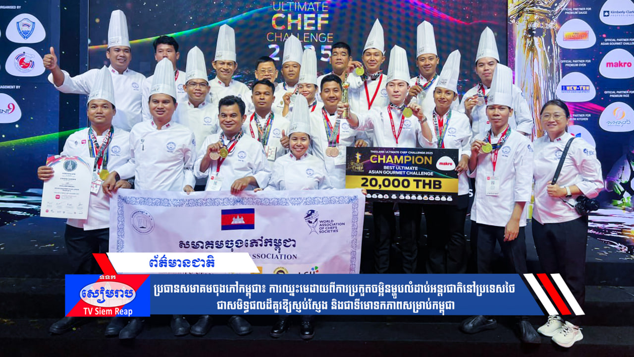 ក្នុងសន្និសីទសារព័ត៌មានរបស់សមាគមចុងភៅកម្ពុជា ខេត្តសៀមរាប នាព្រឹកថ្ងៃទី០៦ ខែមិថុនា ឆ្នាំ២០២៥នេះ លោកស្រី ប៉ុល គឹមសាន ប្រធានសមាគមចុងភៅកម្ពុជា បានបង្ហាញថា ការចូលរួមប្រកួតចម្អិនម្ហូបលំដាប់អន្តរជាតិនៅប្រទេសថៃ ដែលកម្ពុជាទទួលបានមេដៃចំនួន ២១គ្រឿង គឺជាសមិទ្ធផលដ៏គួរឱ្យកោតស្ញប់ស្ញែង និងជាទីមោទកភាពសម្រាប់ប្រទេសកម្ពុជា នៅលើឆាកអន្តរជាតិ។