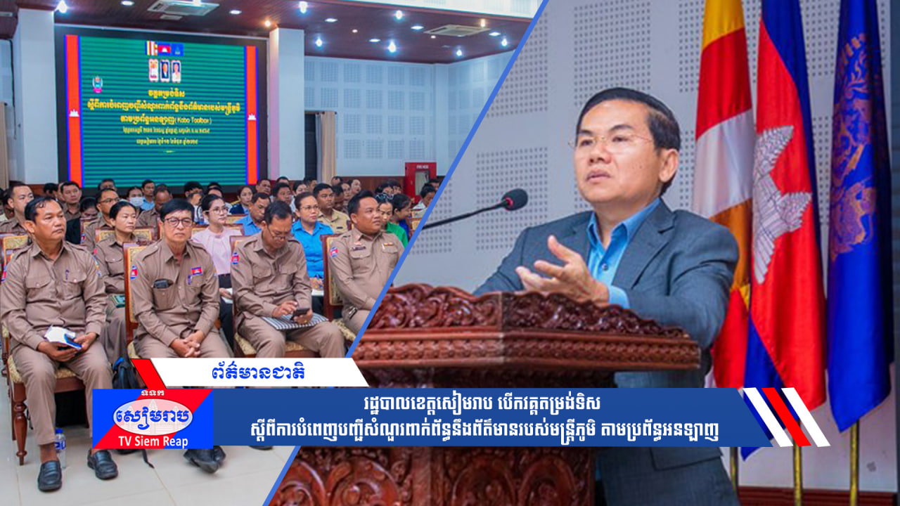 នៅថ្ងៃទី១២ ខែមិថុនា ឆ្នាំ២០២៥ រដ្ឋបាលខេត្តសៀមរាប បានរៀបចំបើកវគ្គតម្រង់ទិស ស្តីពីការបំពេញបញ្ជីសំណួរពាក់ព័ន្ធនឹងព័ត៌មានរបស់មន្ត្រីភូមិ តាមប្រព័ន្ធអនឡាញ (Kobo Toolbox) ជូនដល់អាជ្ញាធរ និងមន្ត្រីជំនាញពាក់ព័ន្ធ ដើម្បីឱ្យស្របទៅនឹងសេចក្តីណែនាំរបស់ក្រសួងមហាផ្ទៃ ស្តីពីបែបបទ នីតិវិធី នៃការជ្រើសរើសមេភូមិ ការចូលកាន់តំណែង ការផ្លាស់ប្តូរមេភូមិ ការតែងតាំងជំនួយការមេភូមិ និងតួនាទីភារកិច្ច របៀបរបបធ្វើការងាររបស់ភូមិ។