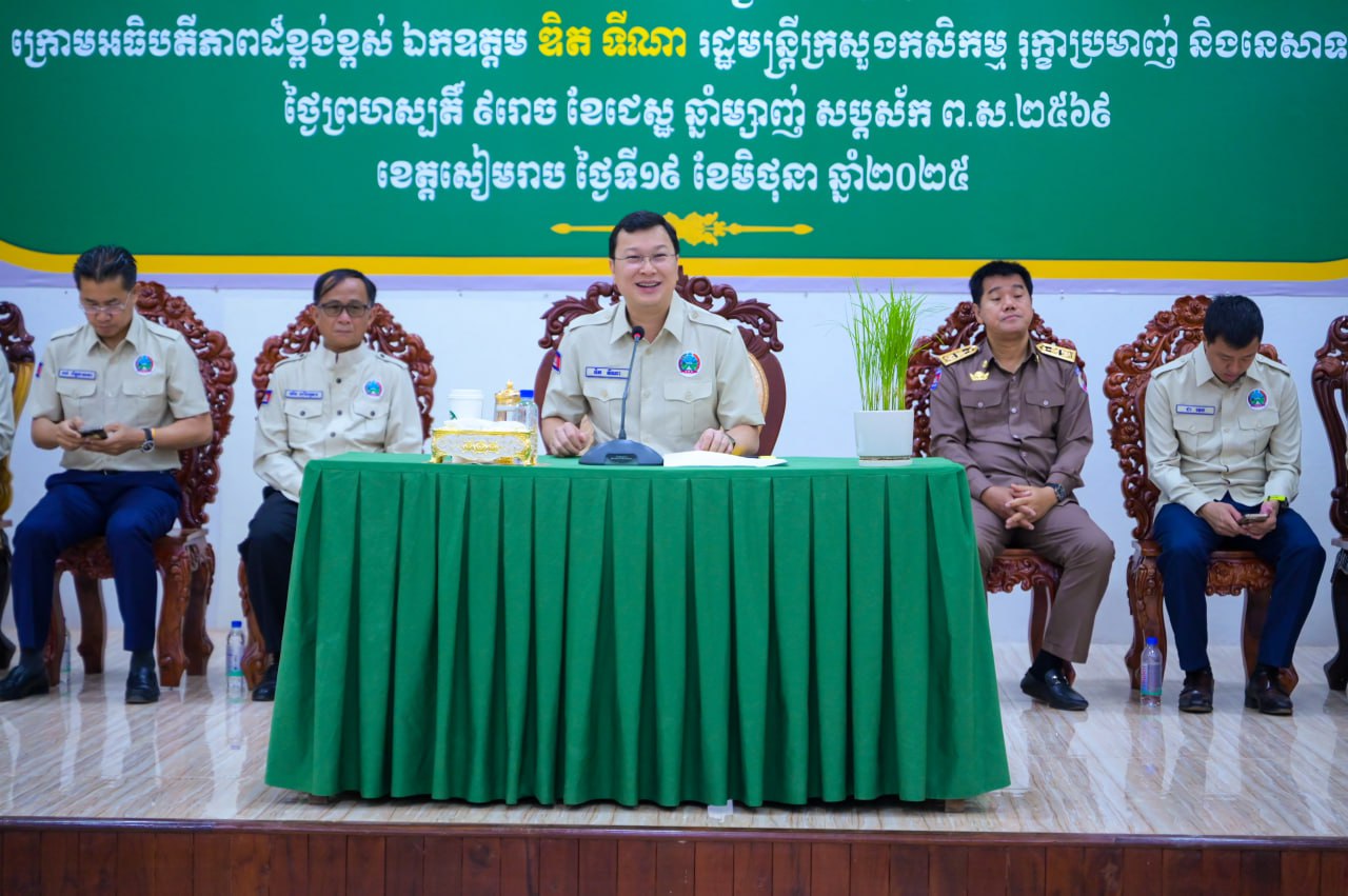 ក្នុងពិធីសំណេះសំណាលជាមួយមន្រ្តីកសិកម្មឃុំសង្កាត់ នៅខេត្តសៀមរាប នាថ្ងៃទី១៩ ខែមិថុនា ឆ្នាំ២០២៥នេះ ឯកឧត្តម ឌិត ទីណា រដ្ឋមន្ត្រីក្រសួងកសិកម្ម បានលើកឡើងអំពីគោលនយោបាយក្នុងវិស័យកសិកម្ម ដែលផ្ដោតអាទិភាពលើការធានាសន្តិសុខស្បៀង ការលើកកម្ពស់ជីវភាពកសិករ និងការរួមចំណែកទ្រទ្រង់សេដ្ឋកិច្ចជាតិ និងទស្សនាទាន “មានហូប មានប្រើ មានបាន និងមានរហូត” ដែលក្រសួងកំពុងជំរុញអនុវត្តយ៉ាងសកម្ម។