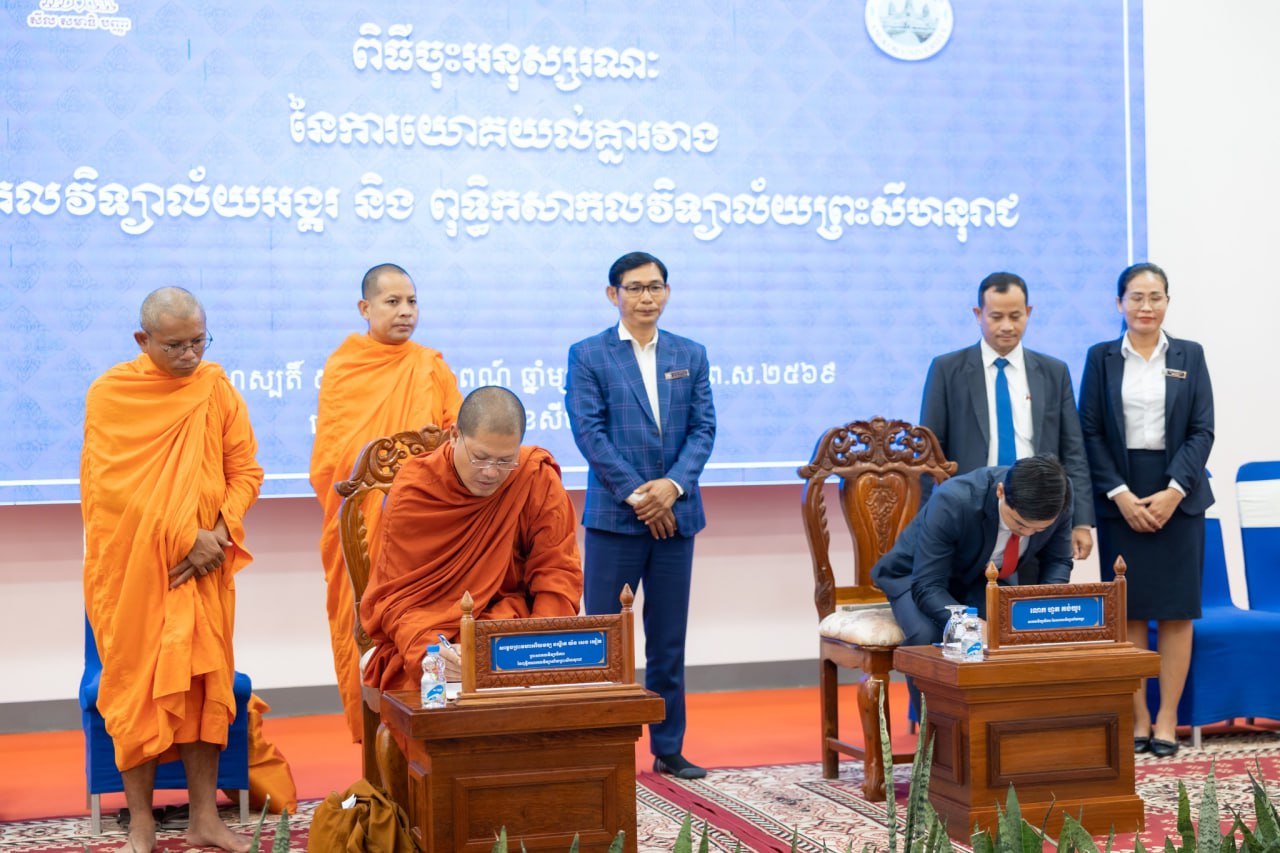 នៅរសៀលថ្ងៃទី១៤ ខែសីហា ឆ្នាំ២០២៥ សាកលវិទ្យាល័យអង្គរ ខេត្តសៀមរាប និងសាកលវិទ្យាល័យព្រះសីហនុរាជ បានចុះអនុស្សរណៈនៃការយោគយល់គ្នា ផ្តោតលើការបង្កើតកិច្ចសហប្រតិបត្តិការ និងលើកកម្ពស់ការគាំទ្រពីគ្នាទៅវិញទៅមកពាក់ព័ន្ធនឹងការអភិវឌ្ឍសមត្ថភាព ក្រោមព្រះវត្តមាន សម្តេចព្រះមហាអរិយវង្ស បណ្ឌិត យ៉ន សេងយៀត ព្រះសាកលវិទ្យាធិការនៃពុទ្ធិកសាកលវិទ្យាល័យព្រះសីហនុរាជ និង ឯកឧត្តម សុខ តុញ អនុប្រធានក្រុមប្រឹក្សាភិបាលសាកលវិទ្យាល័យអង្គរ។