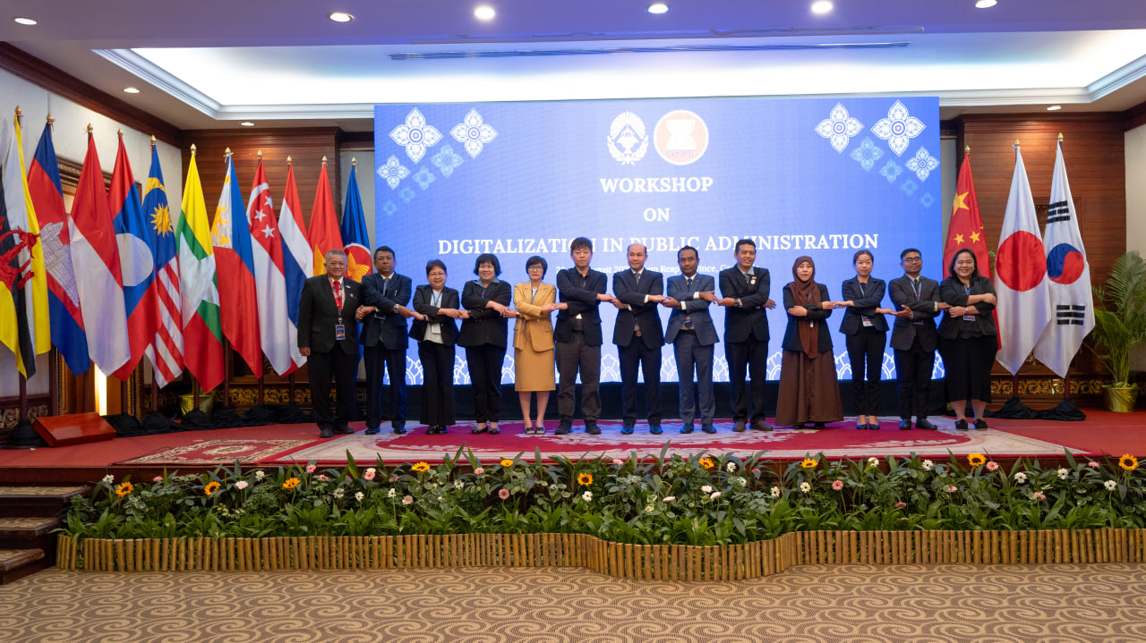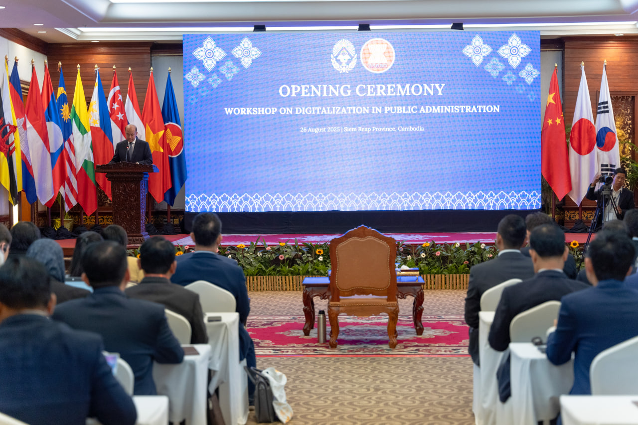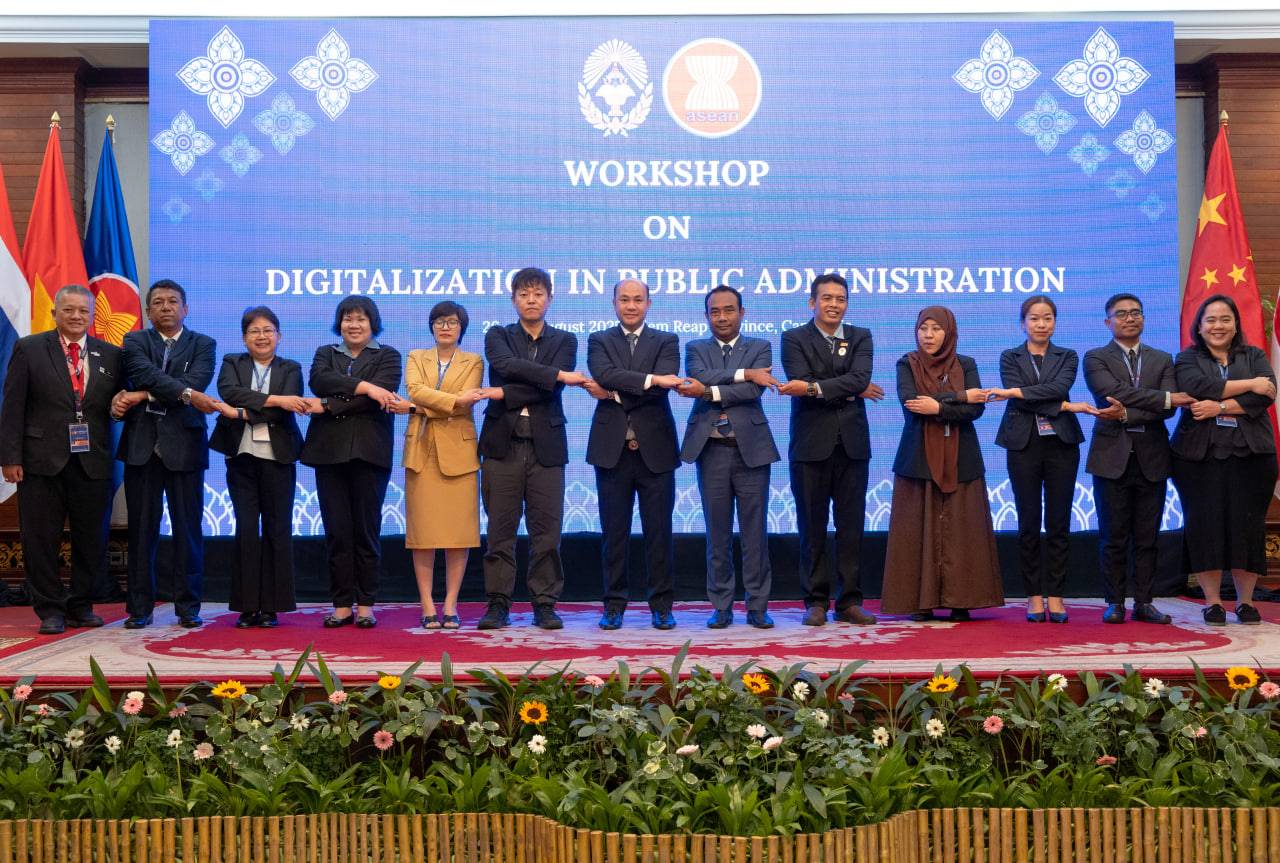 សូមជម្រាបថា សិក្ខាសាលាស្តីពីឌីជីថលូបនីយកម្មក្នុងរដ្ឋបាលសាធារណៈសម្រាប់ប្រទេសសមាជិកអាស៊ាន និងប្រទេសទីម័រឡេស្តេ មានការអញ្ជើញចូលរួមពីសិក្ខាកាមនៃបណ្តាប្រទេសជាសមាជិកអាស៊ាន, ប្រទេសទីម័រខាងកើត, ប្រទេសជប៉ុន, ប្រទេសចិន, ប្រទេសកូរ៉េខាងត្បូង និងលេខាធិការដ្ឋានអាស៊ាន ព្រមទាំងមន្ត្រីរាជការតំណាងក្រសួងស្ថាប័ននៃព្រះរាជាណាចក្រកម្ពុជា និងមន្ត្រីពាក់ព័ន្ធផ្សេងទៀត ដោយផ្ទាល់ និងតាមប្រព័ន្ធអនឡាញផងដែរ៕
