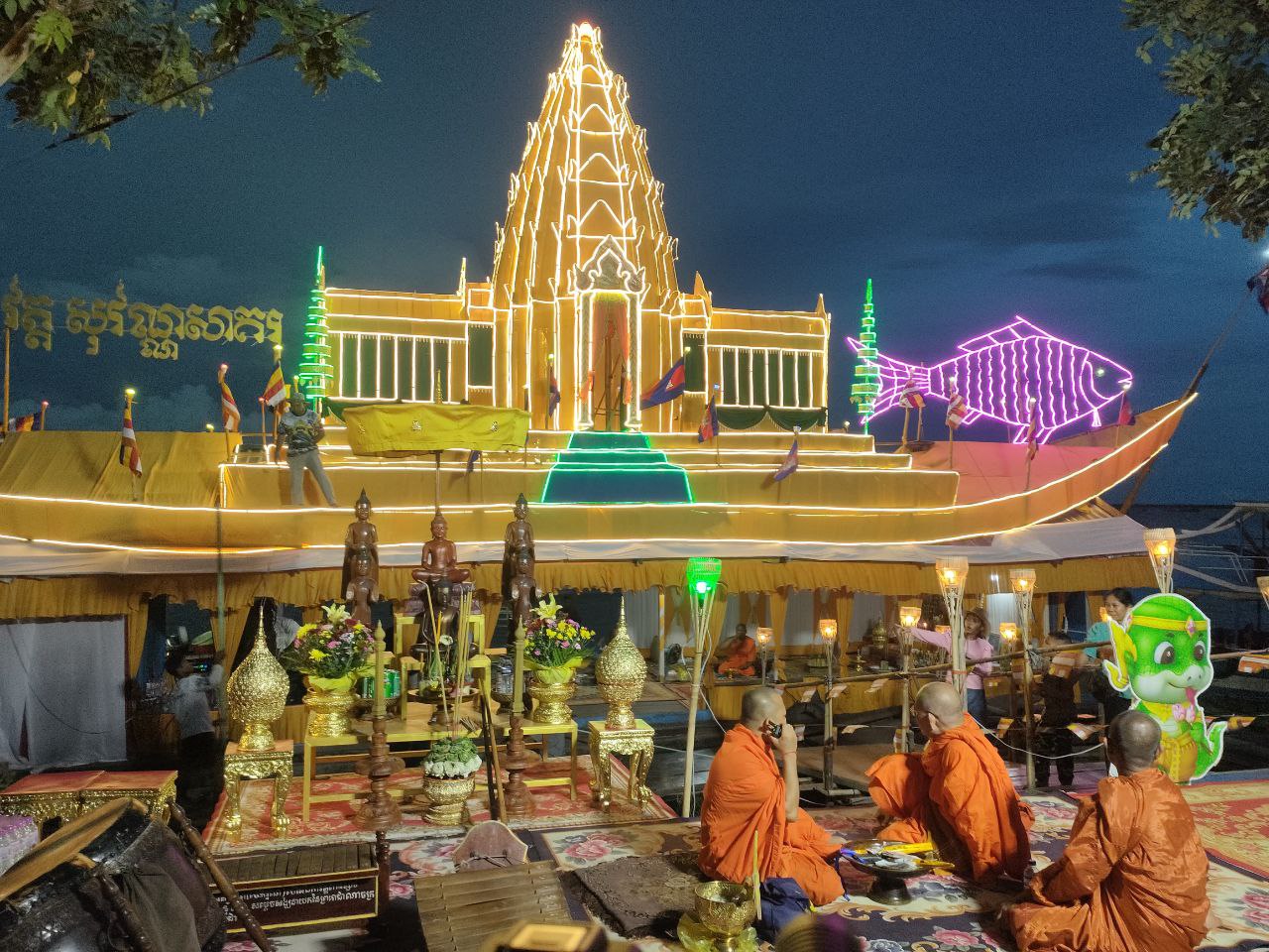 នារាត្រីថ្ងៃទី១២ ខែតុលា ឆ្នាំ២០២៥ ព្រះសង្ឃ គណៈកម្មការ អាចារ្យវត្ត និងប្រជាពលរដ្ឋចំណុះជើងវត្តសុវណ្ណសាគរ ហៅវត្តកោះខ្សាច់ ក្នុងសង្កាត់ចុងឃ្នៀស ក្រុងសៀមរាប បានរៀបចំបណ្ដែតប្រទីបជ្វាលាថ្វាយព្រះគង្គា លើផ្ទៃទន្លេសាប ដើម្បីសម្តែងការដឹងគុណ សុំខមាលទោសចំពោះព្រះម៉ែគង្គា ធម្មជាតិ ម្ចាស់ទឹកម្ចាស់ដី និងដើម្បីបួងសួងសុំសេចក្ដីសុខដល់វីរៈកងទ័ព ដែលកំពុងឈរជើងការពារតាមបណ្ដោយបន្ទាត់ព្រំដែន។