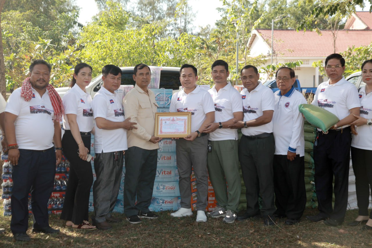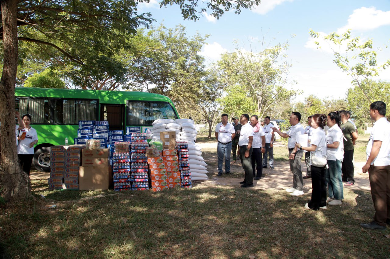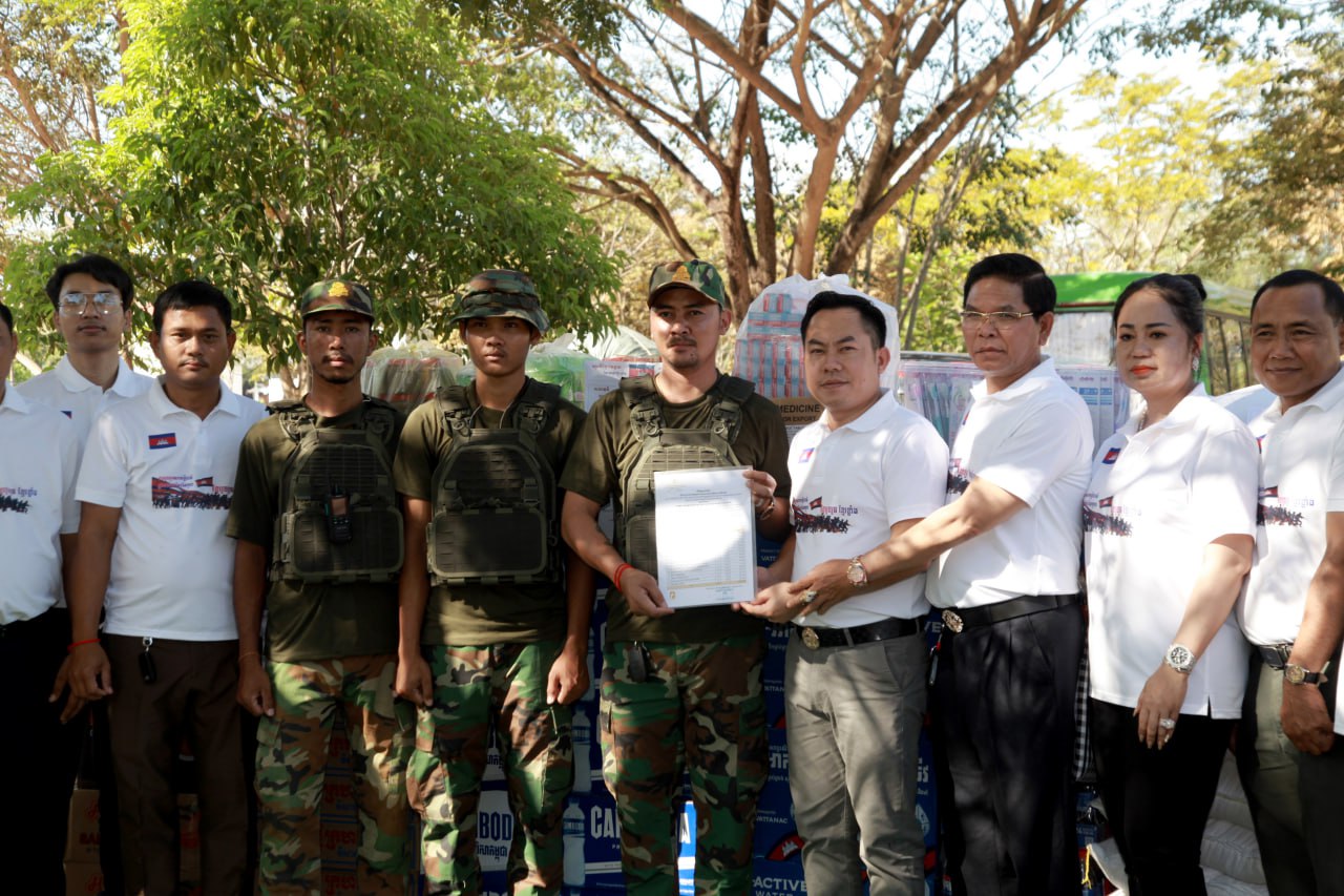 បញ្ជាការដ្ឋានកាំភ្លើងធំប្រចាំទិសទី៣ និងកងពលតូចថ្មើរជើងលេខ៤២ រដ្ឋបាលខេត្តបន្ទាយមានជ័យ និងជនភៀសសឹកចំនួន ២០០គ្រួសារ កំពុងស្នាក់នៅក្នុងភូមិសាស្ត្រស្រុកបន្ទាយស្រី នារសៀលថ្ងៃទី២១ ខែធ្នូ ឆ្នាំ២០២៥ បានទទួលអំណោយគ្រឿងឧបភោគបរិភោគ និងសម្ភារប្រើប្រាស់មួយចំនួនពីសមាគមសហគ្រិនបញ្ញវន្តកម្ពុជា។