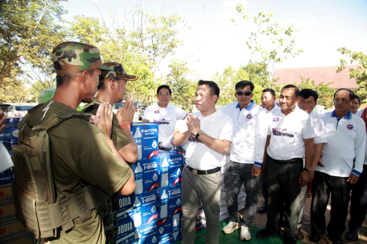 ឯកឧត្តមបណ្ឌិត បន្តថា ក្នុងស្មារតីខ្មែរតែមួយរួមគ្នា ខ្មែរស្រឡាញ់ខ្មែរជួយគ្នាទៅវិញទៅមកទាំងសម្ភារ និងស្មារតី និងក្នុង កាលៈទេសៈដែលប្រទេសជាតិកំពុងទទួលរងនូវការរំលោភបំពាន និងការគំរាមកំហែងយ៉ាងធ្ងន់ធ្ងរ លើបូរណភាពទឹកដីពីសំណាក់យោធាថៃ សូមឱ្យបងប្អូនប្រជាពលរដ្ឋខ្មែរទាំងអស់ ត្រូវរួបរួមសាមគ្គីជួយគ្នាក្នុងគ្រាលំបាក មានទុក្ខរួមទុក្ខ មានសុខរួមសុខ គ្មានអ្វីដែលល្អប្រសើរជាងពេលបានឃើញប្រទេសជាតិមានសន្តិភាពនោះទេ។