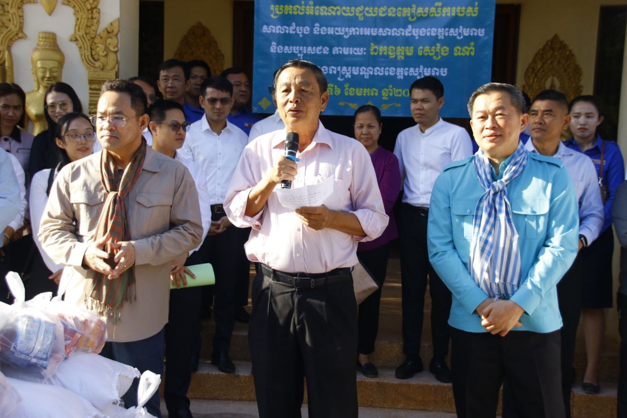 នៅព្រឹកថ្ងៃទី៦ ខែមករា ឆ្នាំ២០២៦ ថ្នាក់ដឹកនាំសាលាដំបូង និងអយ្យការអមសាលាដំបូងខេត្តសៀមរាប បាននាំយកថវិកា និងស្បៀងអាហារ ផ្ដល់តាមរយៈ ឯកឧត្តម អ្នកឧកញ៉ា សៀង ណាំ ដើម្បីចែកជូនដល់គ្រួសារកងទ័ព និងប្រជាពលរដ្ឋភៀសសឹកចំនួន ១៦០គ្រួសារ ដែលកំពុងស្នាក់នៅបណ្ដោះអាសន្ន ក្នុងសង្កាត់ស្រង៉ែ ក្រុងសៀមរាប។