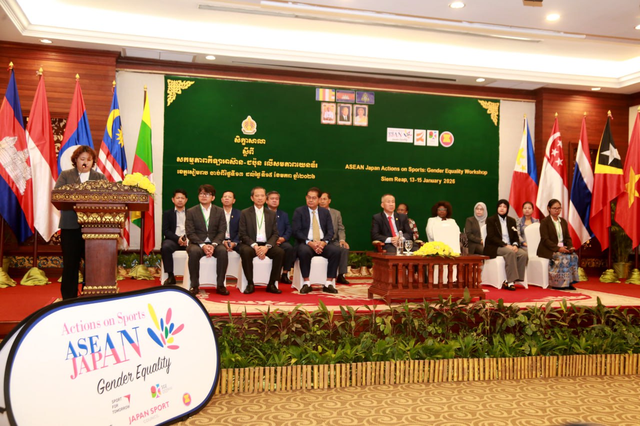 ក្រសួងអប់រំ យុវជន និងកីឡា សហការជាមួយមជ្ឈមណ្ឌលស្រាវជ្រាវអន្តរជាតិសម្រាប់កីឡា និងសមភាពយេនឌ័រនៃប្រទេសជប៉ុន បានបើកសិក្ខាសាលាស្តីពី «សកម្មភាពកីឡាអាស៊ាន-ជប៉ុន លើសមភាពយេនឌ័រ» (ASEAN-Japan Action on Sports: Gender Equality) ដើម្បីបង្កើនការចូលរួមរបស់ក្មេងស្រី និងស្ត្រីក្នុងវិស័យកីឡានៅតំបន់អាស៊ាន ដែលសិក្ខាសាលានេះប្រារព្ធឡើងរយៈពេល ៣ថ្ងៃ ចាប់ពីថ្ងៃទី១៣-១៥ ខែមករា ឆ្នាំ២០២៦ នៅខេត្តសៀមរាប។