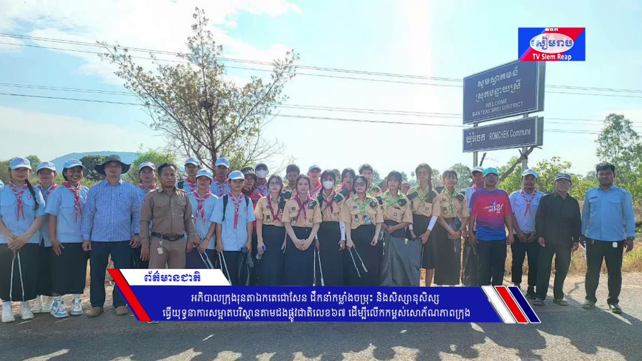 នារសៀលថ្ងៃទី១២ ខែកុម្ភៈ ឆ្នាំ២០២៦ លោក អ៉ឹង សុភ័ណ អភិបាលក្រុងរុនតាឯកតេជោសែន ខេត្តសៀមរាប បានដឹកនាំមន្ត្រីរដ្ឋបាលក្រុងសង្កាត់ កងកម្លាំងនគរបាល លោកគ្រូអ្នកគ្រូ សិស្សានុសិស្ស យុវជនកាកបាទក្រហមកម្ពុជា យុវជនកាយរិទ្ធិ និងយុវជនគណបក្សប្រជាជនកម្ពុជា ធ្វើយុទ្ធនាការទ្រង់ទ្រាយធំមួយ ក្នុងការសម្អាតអនាម័យ បរិស្ថាន និងប្រមូលសំណល់សំរាមតាមបណ្ដោយផ្លូវជាតិលេខ៦៧ ចាប់ពីព្រំប្រទល់ស្រុកប្រាសាទបាគង រហូតដល់ព្រំប្រទល់ស្រុកបន្ទាយស្រី។
